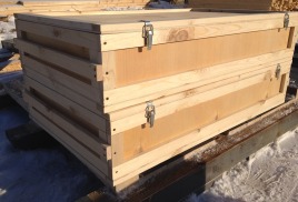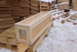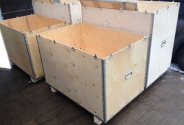 Фанерные ящики снабжены деревянными и металлическими ручками по бокам. Крышка на петлях и защелках. Фанера 6мм. В заказе присутствуют складные ящики, так же произведенные у нас на производстве на специальных станках.