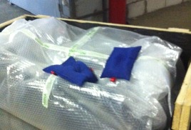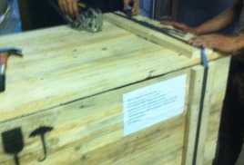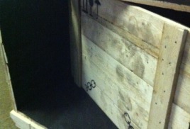 Деревянный ящик изготовлен из нестроганой доски, обит изнутри пергамином и снабжен мешочками с силикагелем для поддержания низкой влажности.