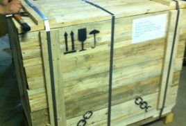 На тару нанесены соответствующие манипуляционные знаки. Дополнительно ящик укреплен металлической стяжной лентой.